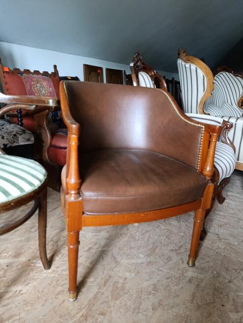 Czy widzieliście już takie cudo? Stylowy fotel z obiciem skórzanym i ramą z drewna w kolorze brązowym. Ponadczasowa ...